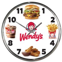 High quality shiny chrome frame featuring full color logo and products. Continuous sweep second hand runs smooth and silent.