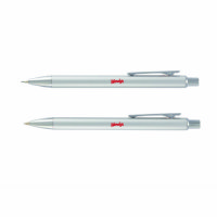 Recycled Pen and Pencil Gift Set combines modern style with dependable performance. Made from 100% recycled aluminum with sleek chrome accents, both pieces deliver smooth, consistent writing. The pen features a 1.0 mm tip with black ink, while the mechanical pencil includes a 0.7 mm tip for precise lines. Chrome plungers add a polished detail, and the set is packaged in a premium black FSC® Certified gift box—perfect for gifting or professional use.