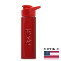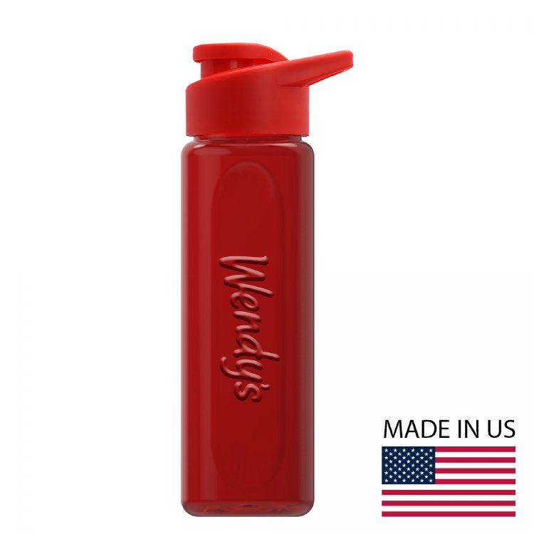 26 oz. RPET bottle with bold 3D embossed logo. Features two flat-sided walls for a comfortable grip and a convenient drink-through lid for easy hydration while on the move. Bottle is made from 100% post-consumer recycled PET. "QUALITY IS OUR RECIPE" imprinted on one of the flat sides.